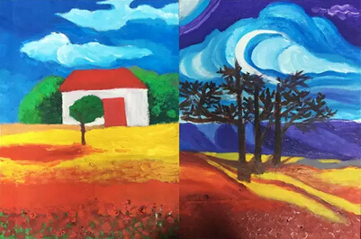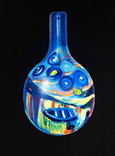 馬勺丙烯畫(huà)。小作者臨摹梵高的《星空》,星空、夜色如此迷人。