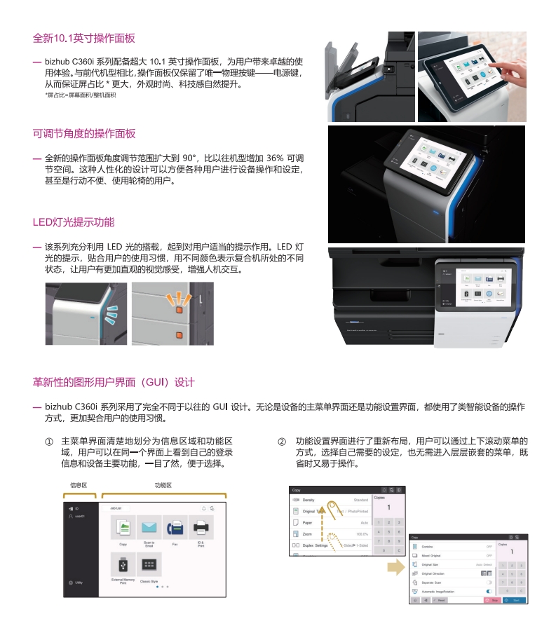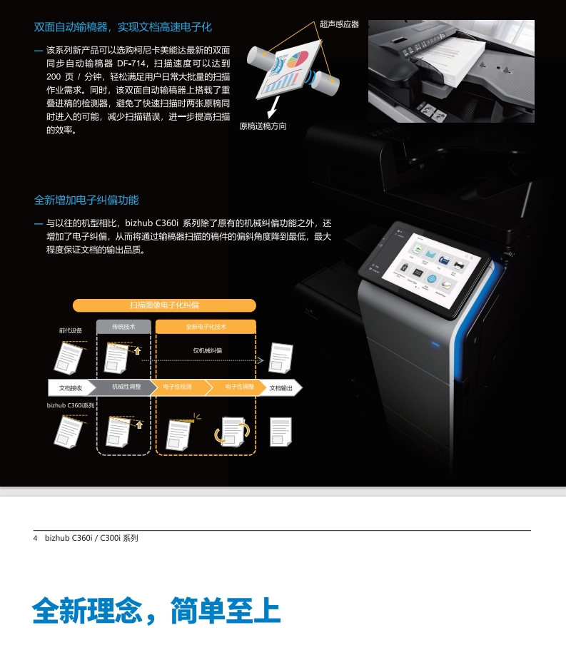 還在為黑白文件缺乏表現力而困擾?還在為辦公設備功能單一、效率低下、成本難控而煩惱?柯尼卡美能達彩色復印機bizhub C300i,專為追求效率與品質的中小型企業及部門量身打造,集高速彩色打印、復印、掃描于一體,助您輕松駕馭繁忙工作,開啟高效智能辦公新時代!